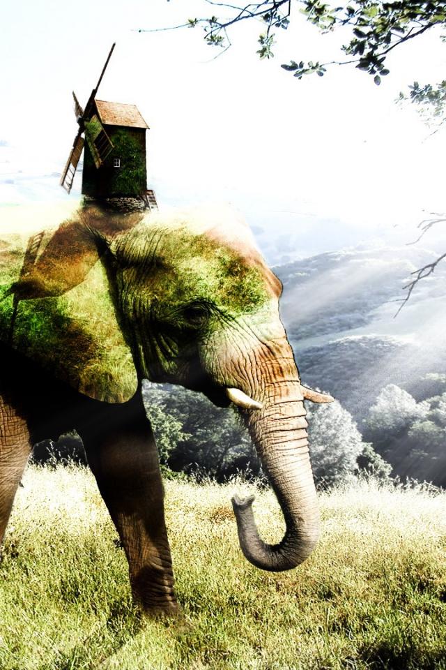 Wallpaper Moss-covered elephant
