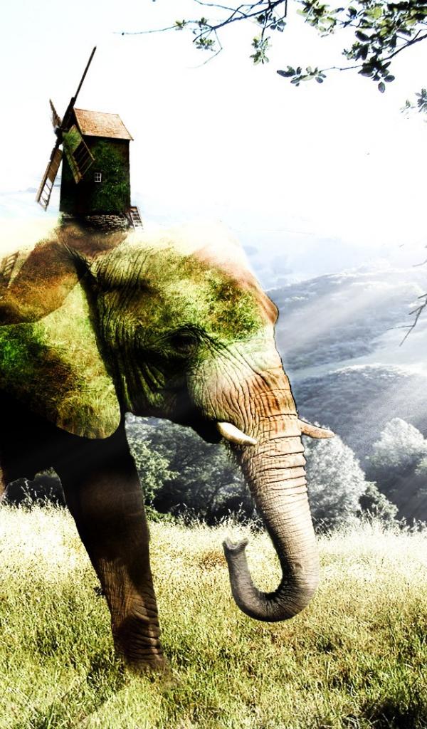 Wallpaper Moss-covered elephant