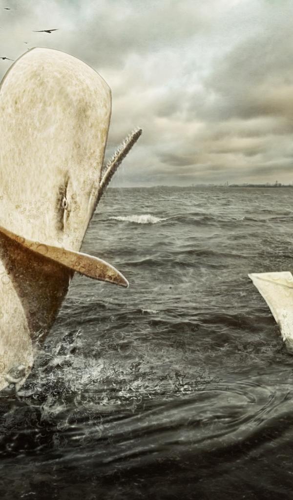 Wallpaper A man in a paper boat and whale