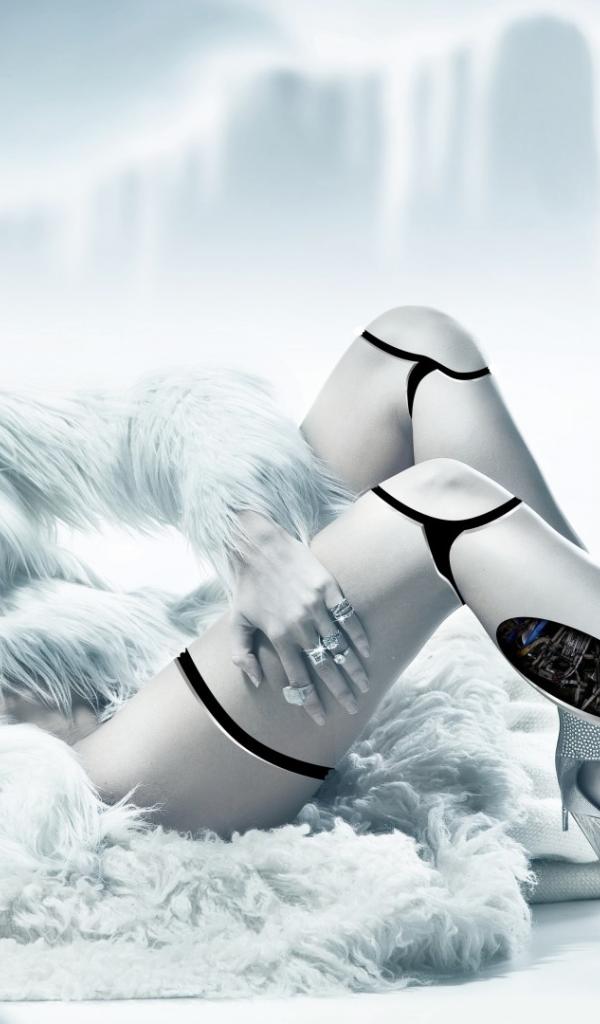 Wallpaper White cyborg in fur clothing