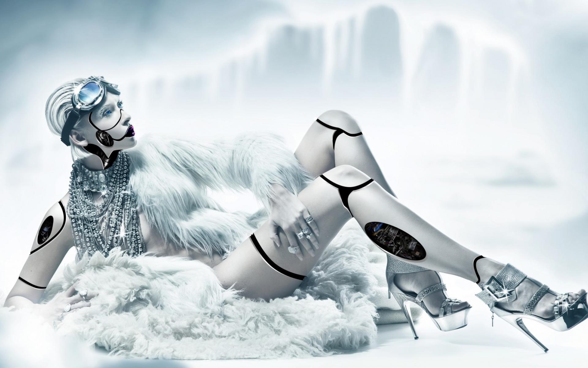 Wallpaper White cyborg in fur clothing