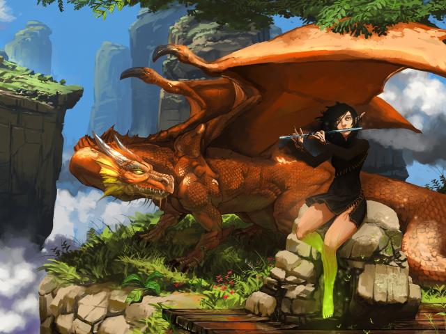 Wallpaper The guy playing the flute for the dragon