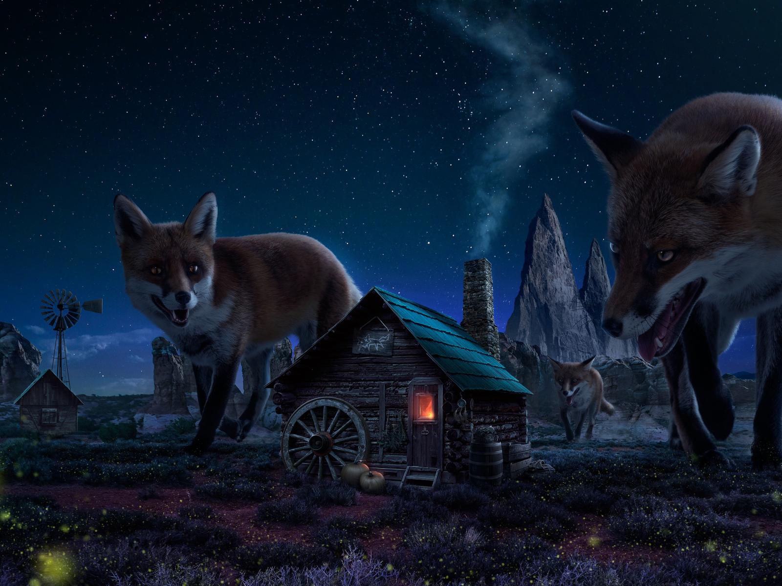 Wallpaper Huge fox in the village