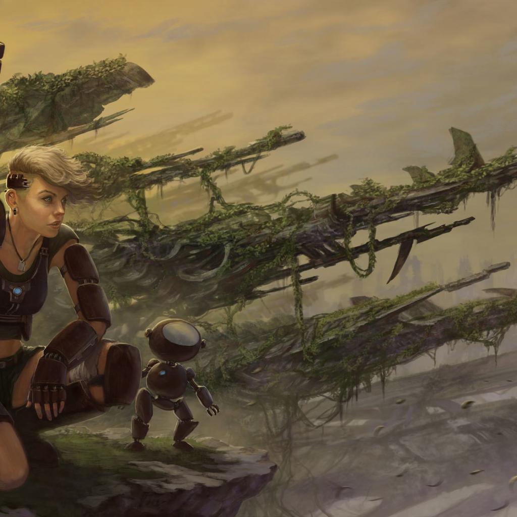 Wallpaper Woman soldier with a robot assistant
