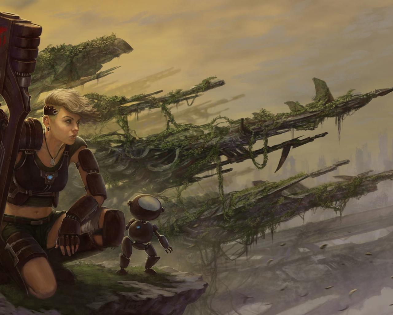 Wallpaper Woman soldier with a robot assistant