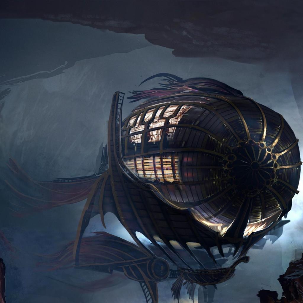 Wallpaper The airship is hidden in a cave