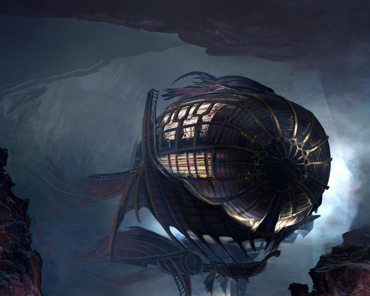 Wallpaper The airship is hidden in a cave