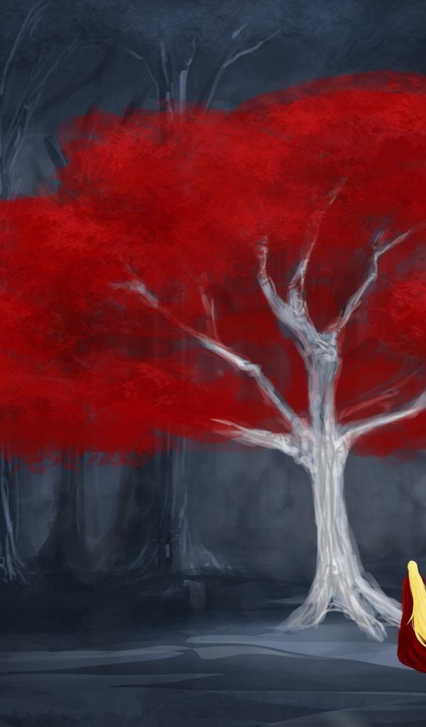 Wallpaper The girl in the red tree in the world of fairy tales