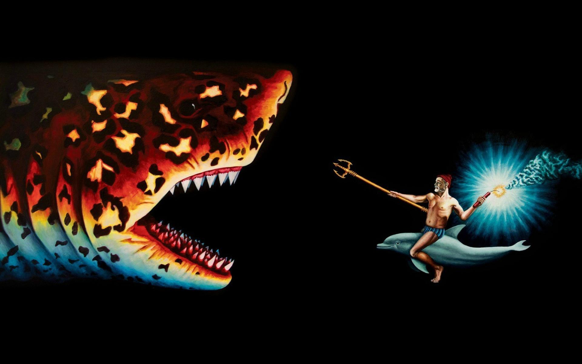 Wallpaper Neptune against Sharks