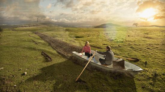 Wallpaper Two in a boat among the field