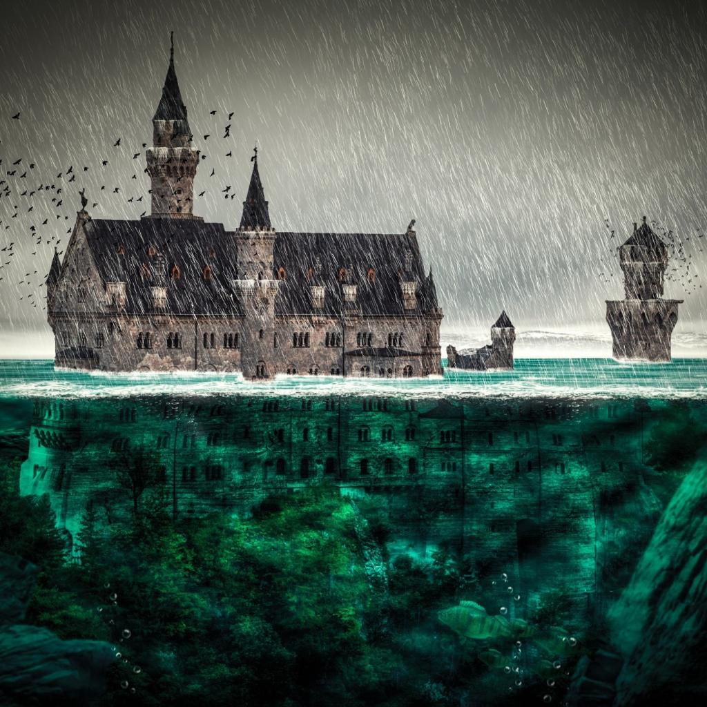 Wallpaper Castle sinks in water Flood