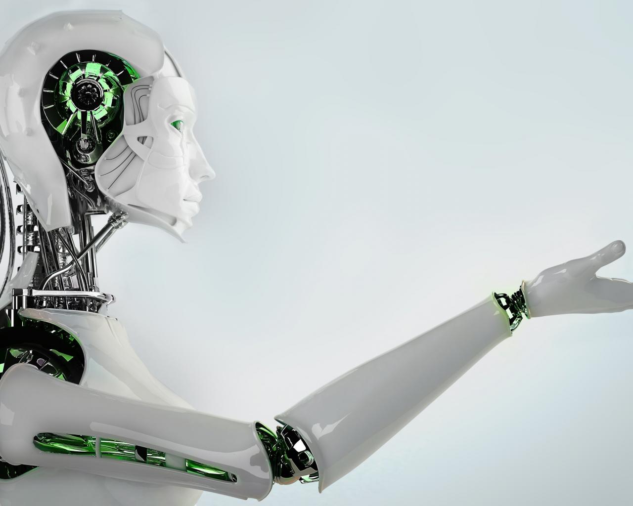 Wallpaper White robot with green accents