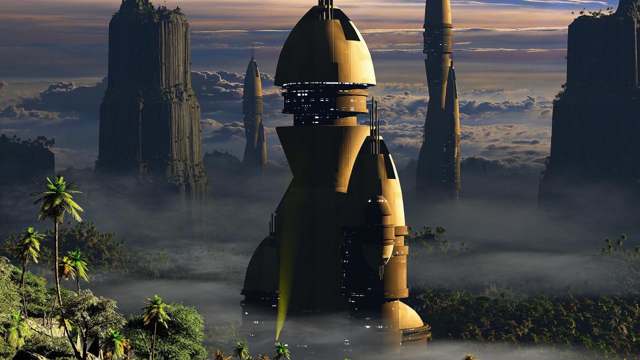 Wallpaper Fantasy city in the country of palms
