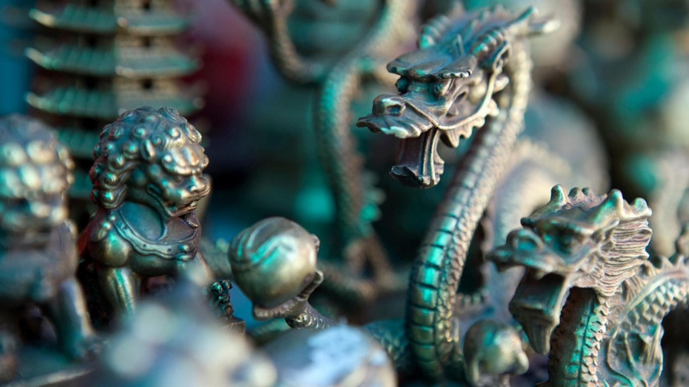 Wallpaper Statuettes Chinese dragons