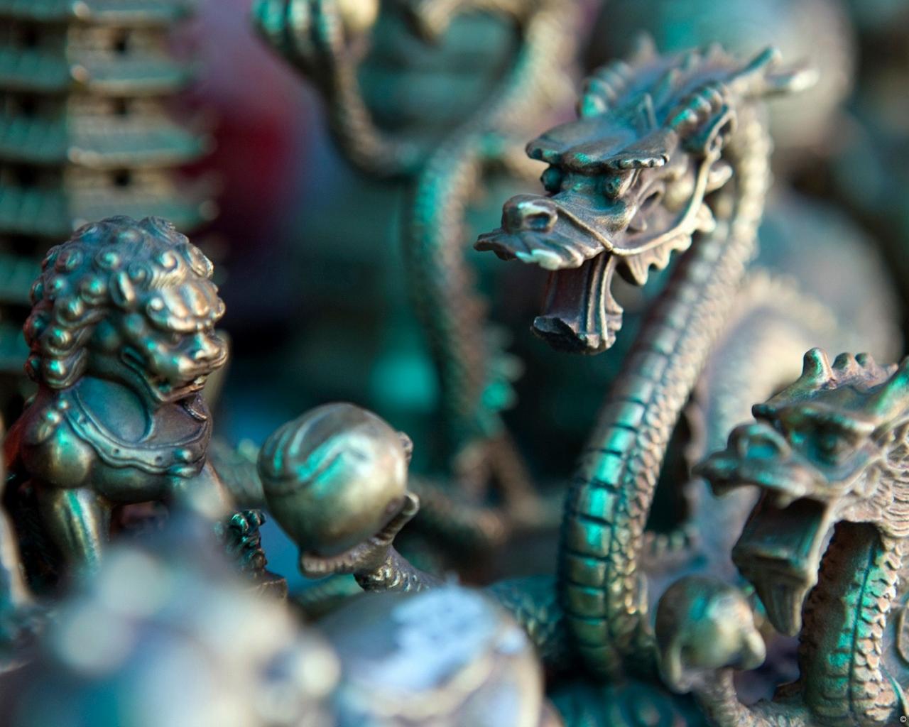 Wallpaper Statuettes Chinese dragons