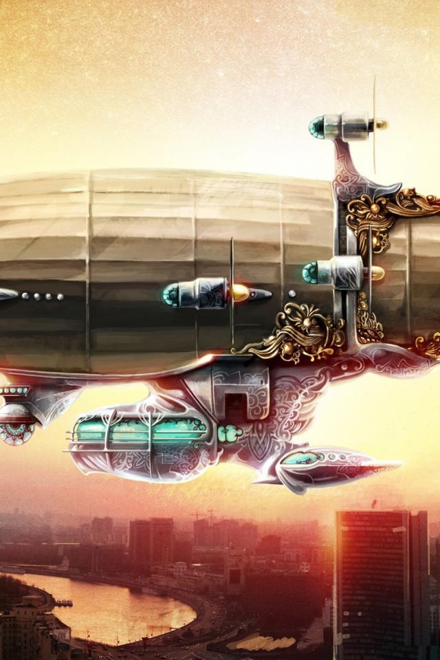 Wallpaper City of the Future in the style of steampunk, artist`s work ArseniXC