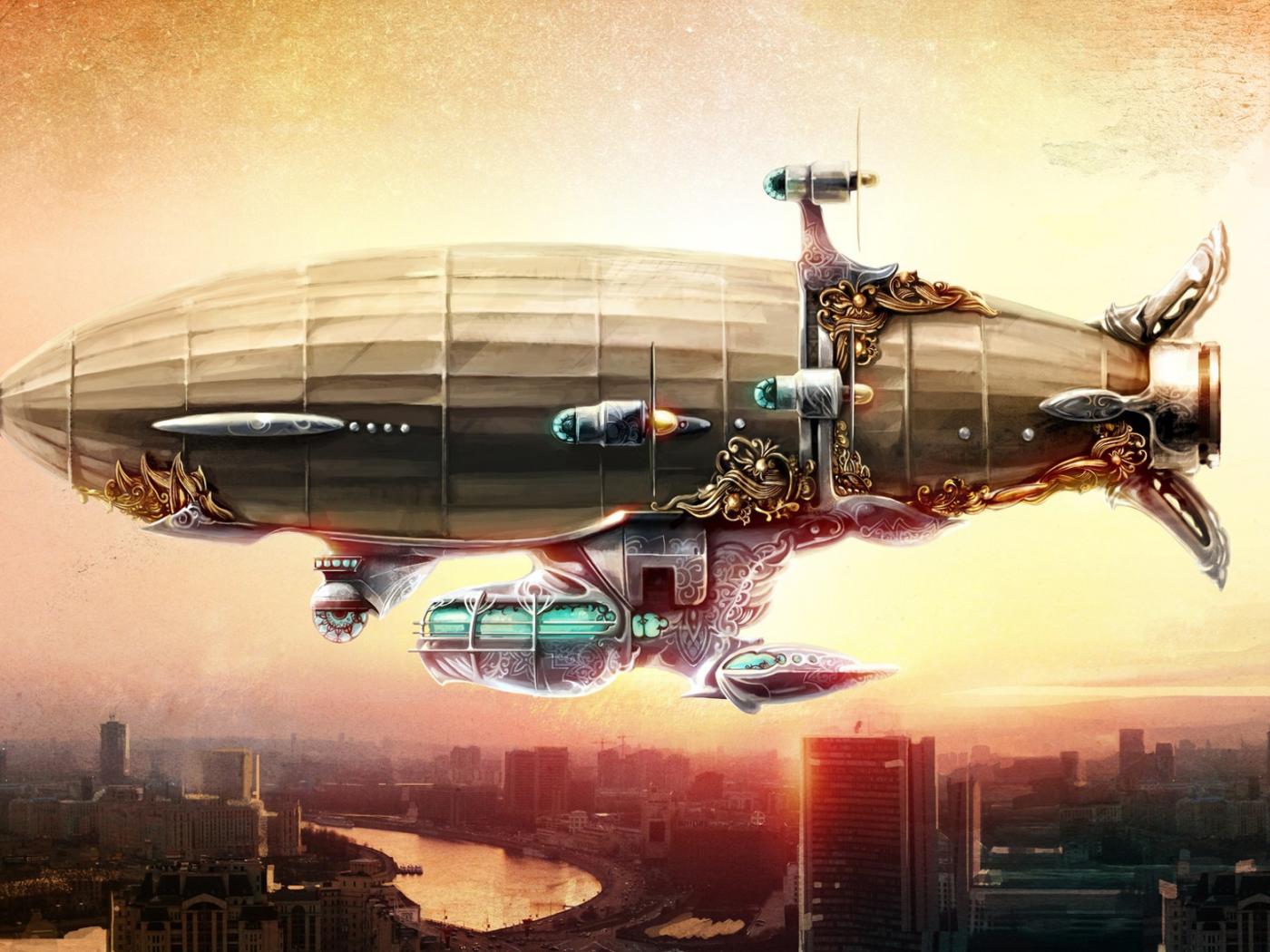 Wallpaper City of the Future in the style of steampunk, artist`s work ArseniXC