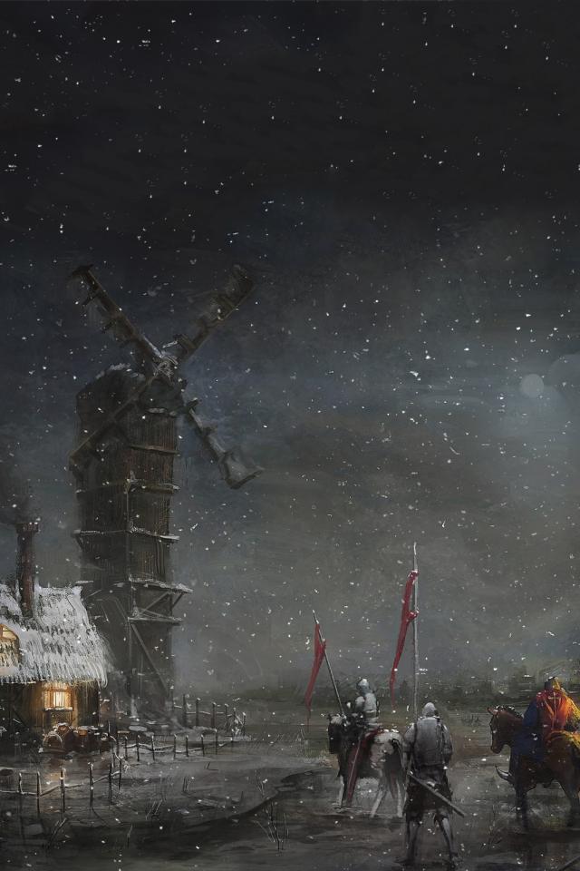Wallpaper A squad of soldiers at the windmill