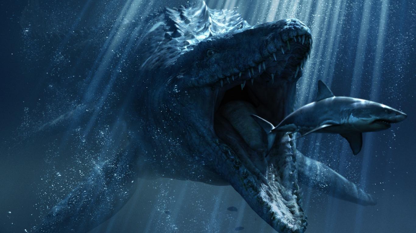 Wallpaper Monster hunts for a shark under water