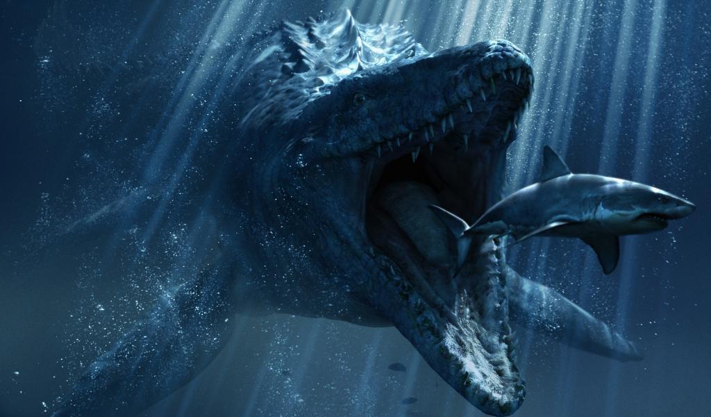 Wallpaper Monster hunts for a shark under water