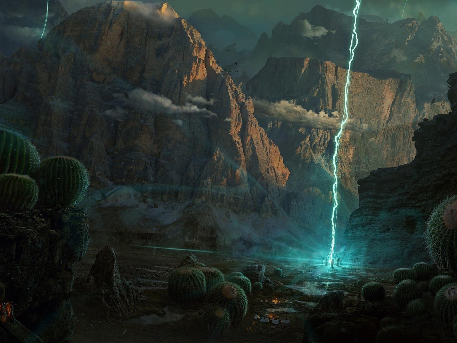Wallpaper Planet lightning and cacti