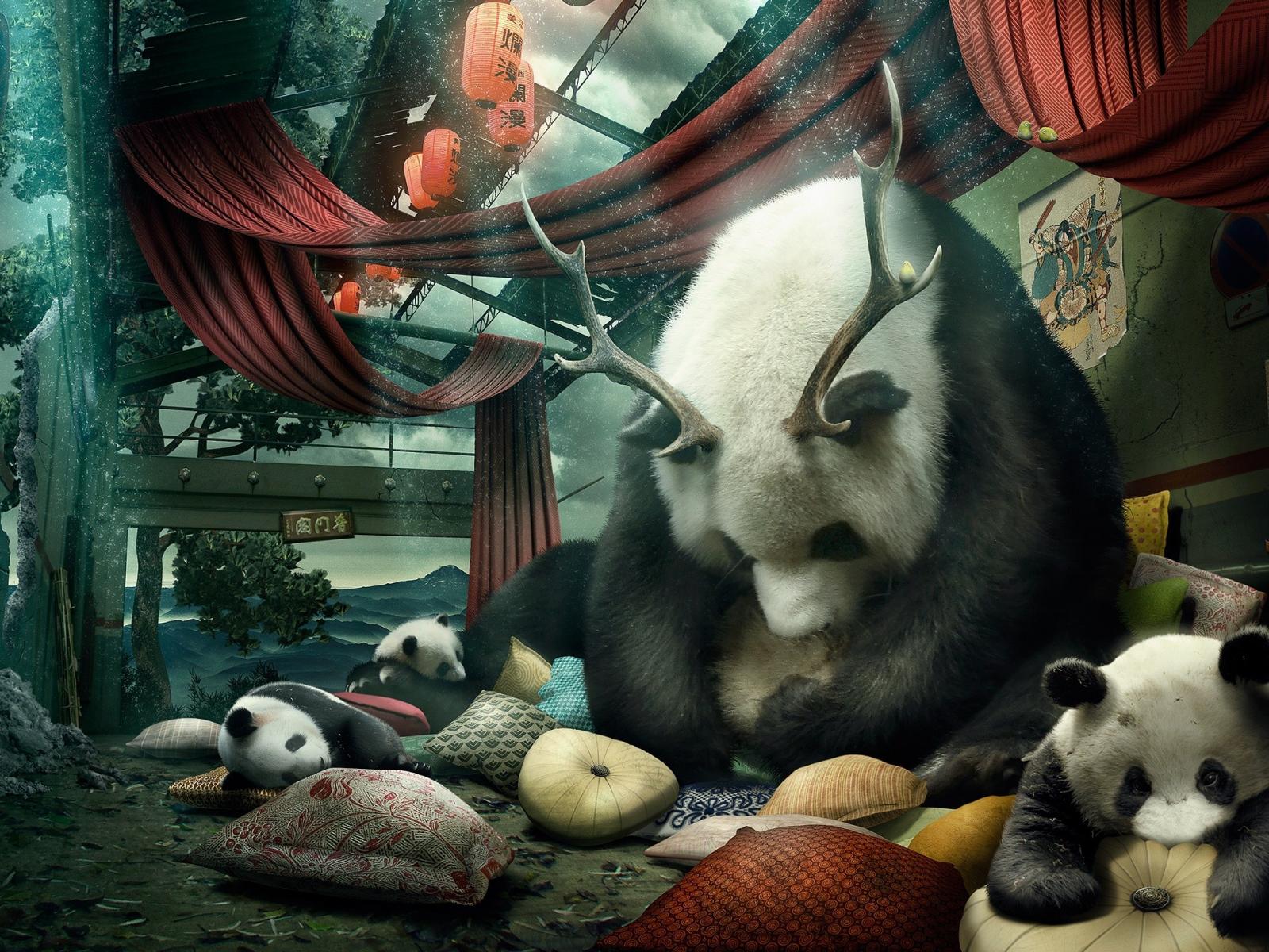 Wallpaper Mom panda with horns