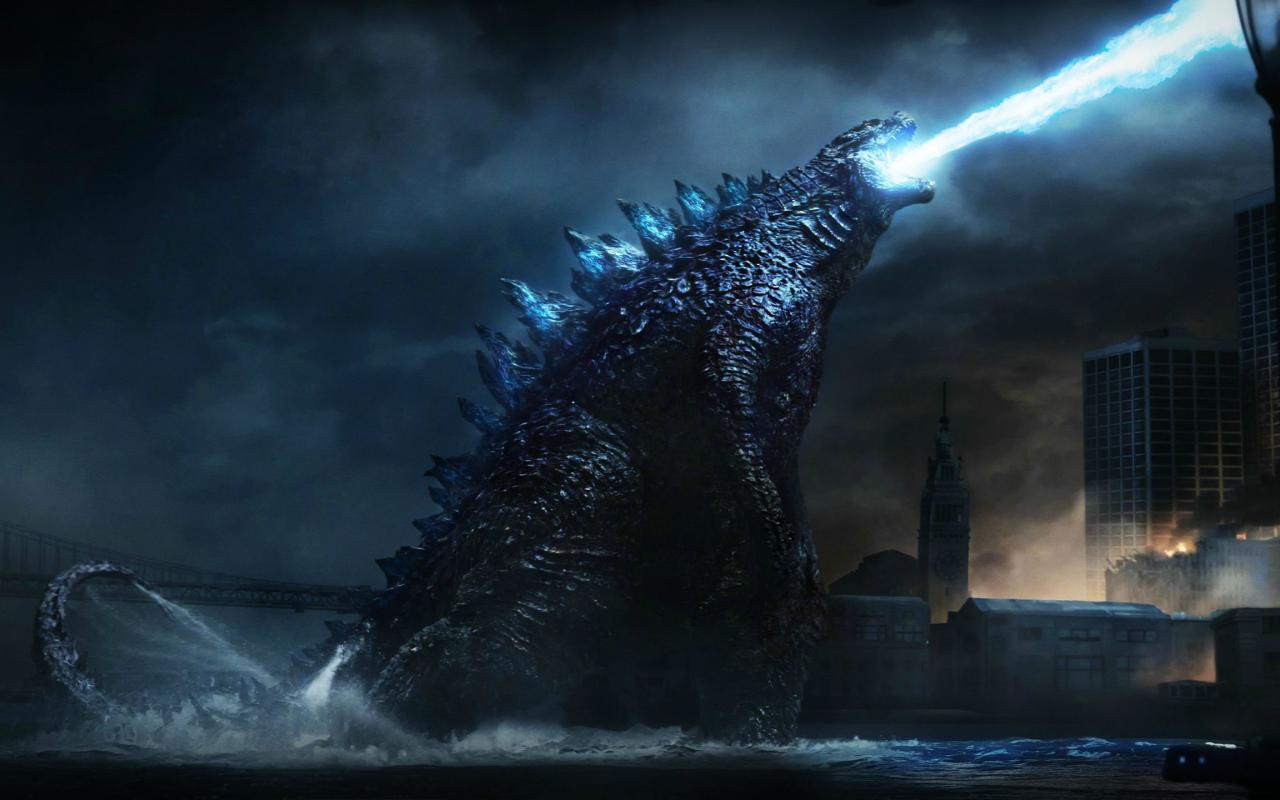 Wallpaper Godzilla spewing blue flames