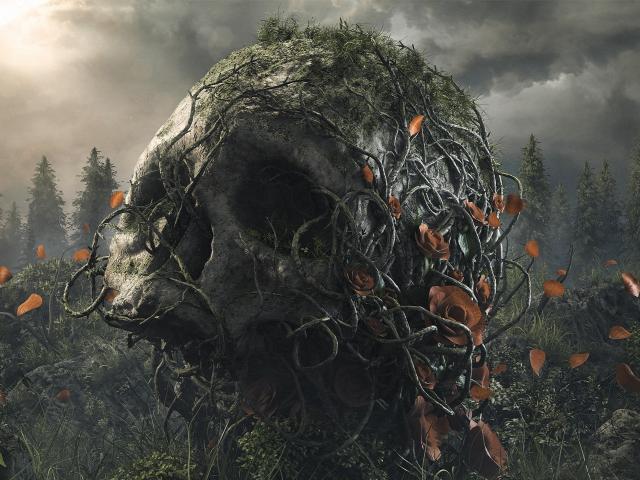 Wallpaper Overgrown with vines large skull