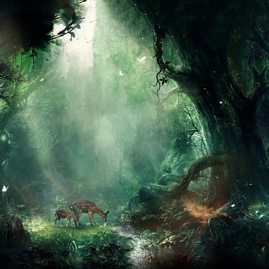 Wallpaper Deer often graze in the magic forest