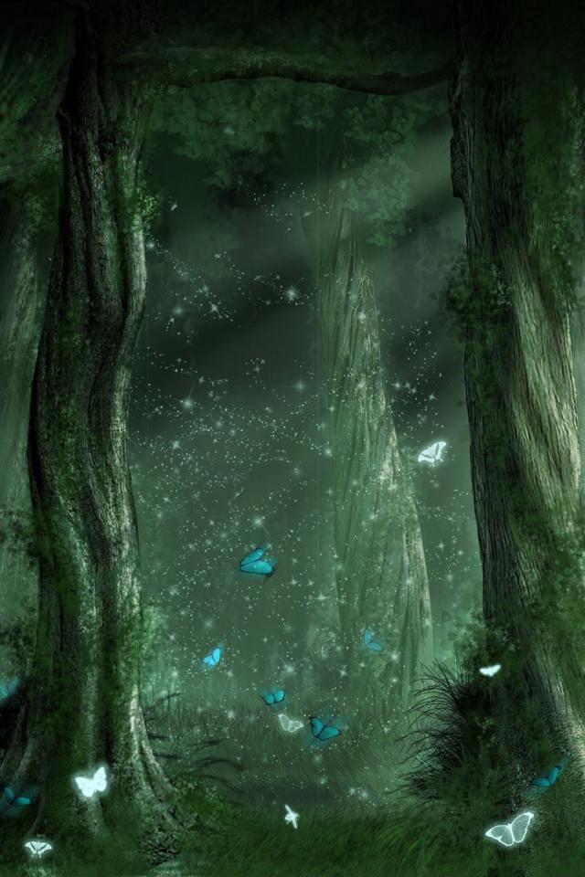 Wallpaper Blue butterfly in the magic forest