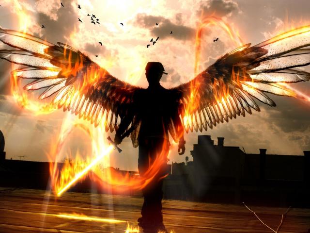 Wallpaper Angel with a flaming sword of vengeance