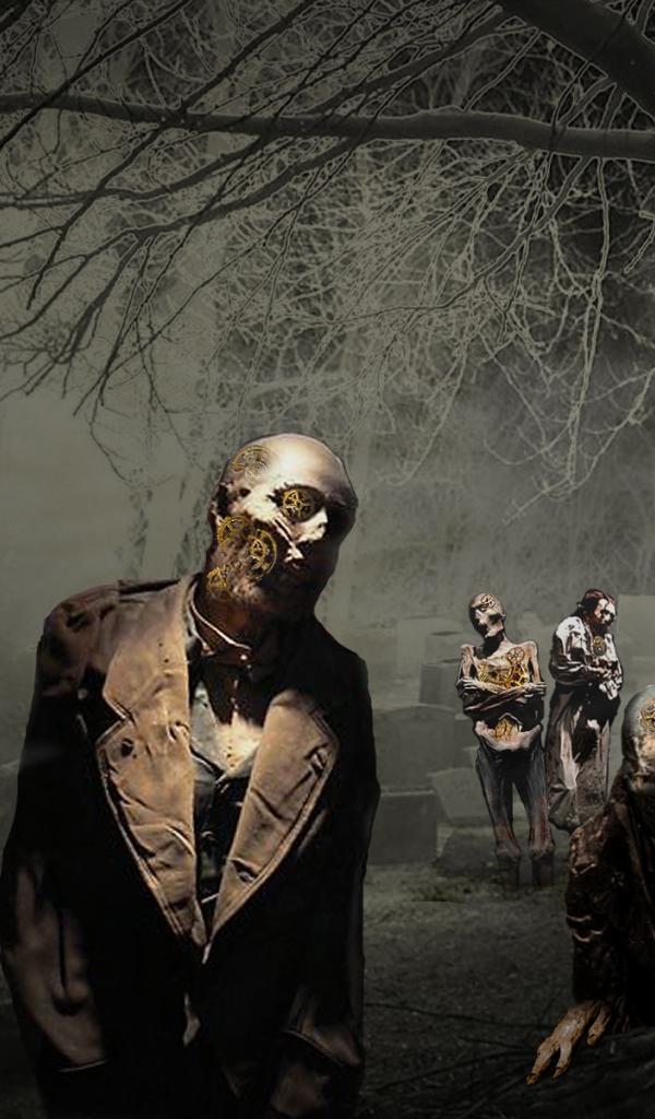 Wallpaper Zombies are among the monuments in the cemetery