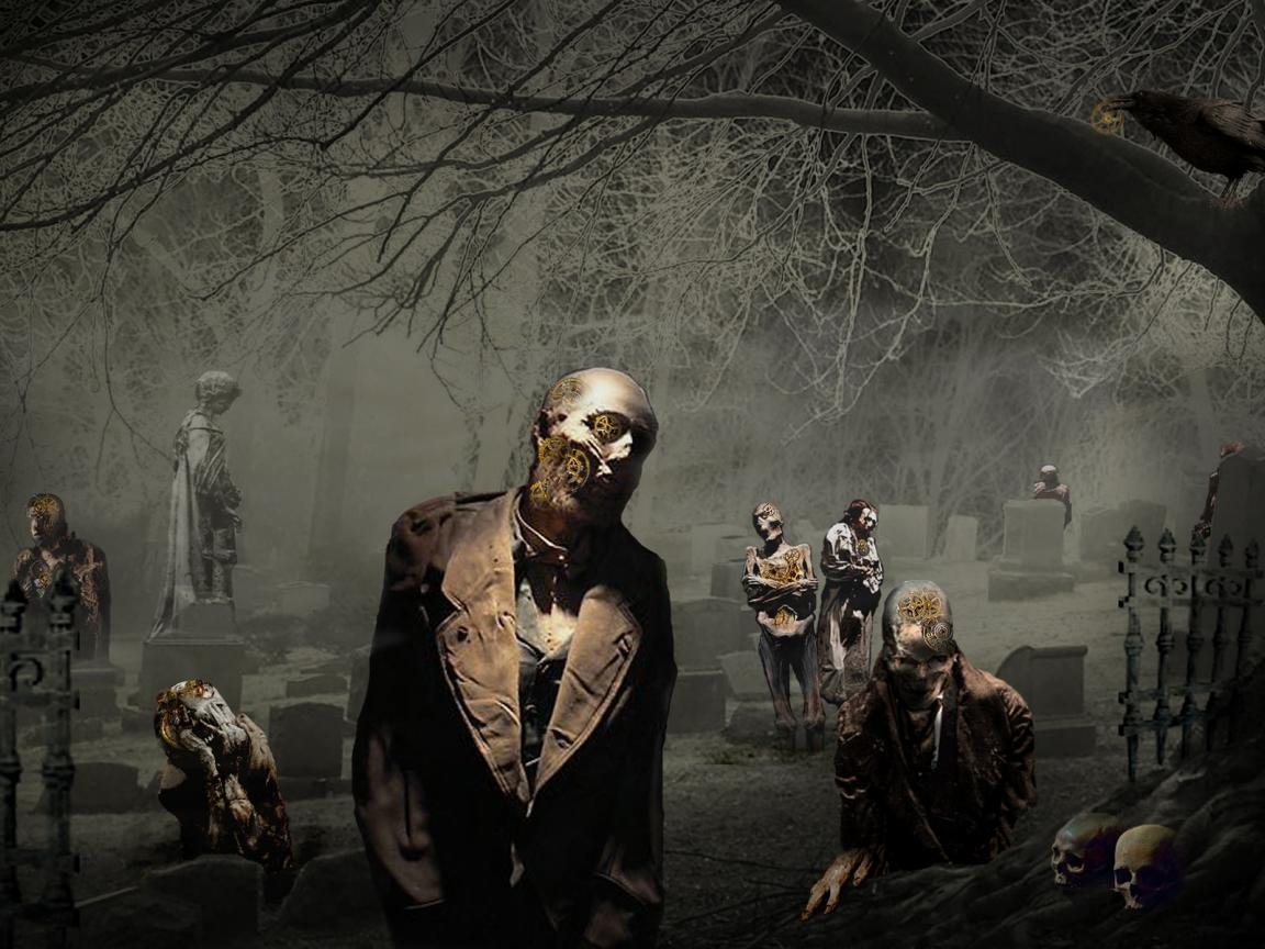 Wallpaper Zombies are among the monuments in the cemetery