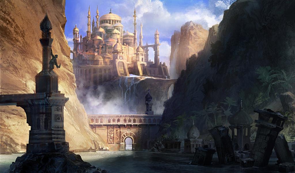 Wallpaper Mosque on a rock in dreamland