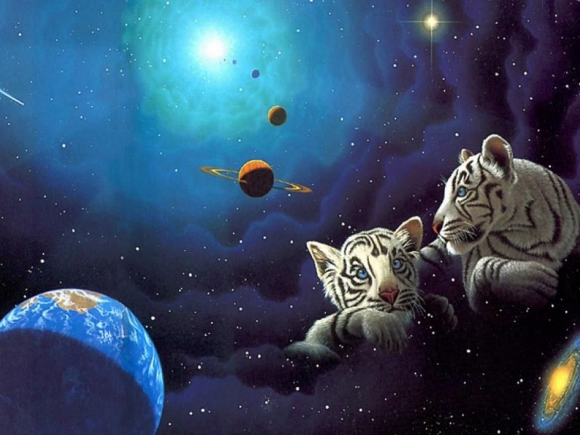 Wallpaper Two white tiger cub in space