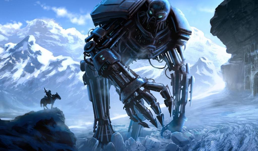 Wallpaper Rider met the robot in the mountains