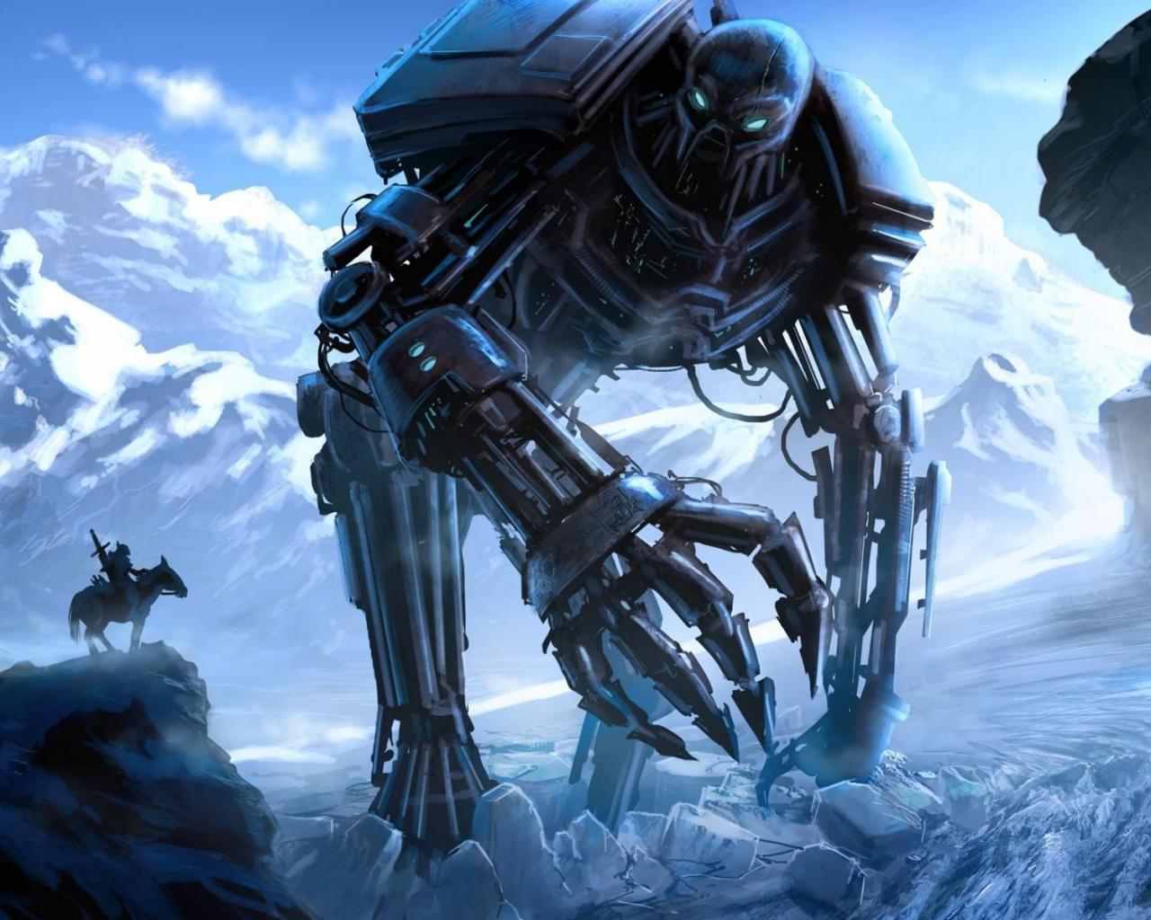 Wallpaper Rider met the robot in the mountains