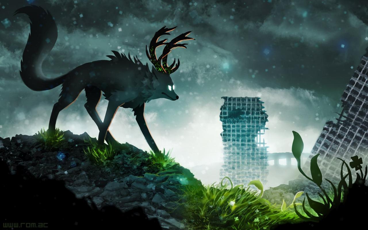 Wallpaper Horned wolf in the world of the future