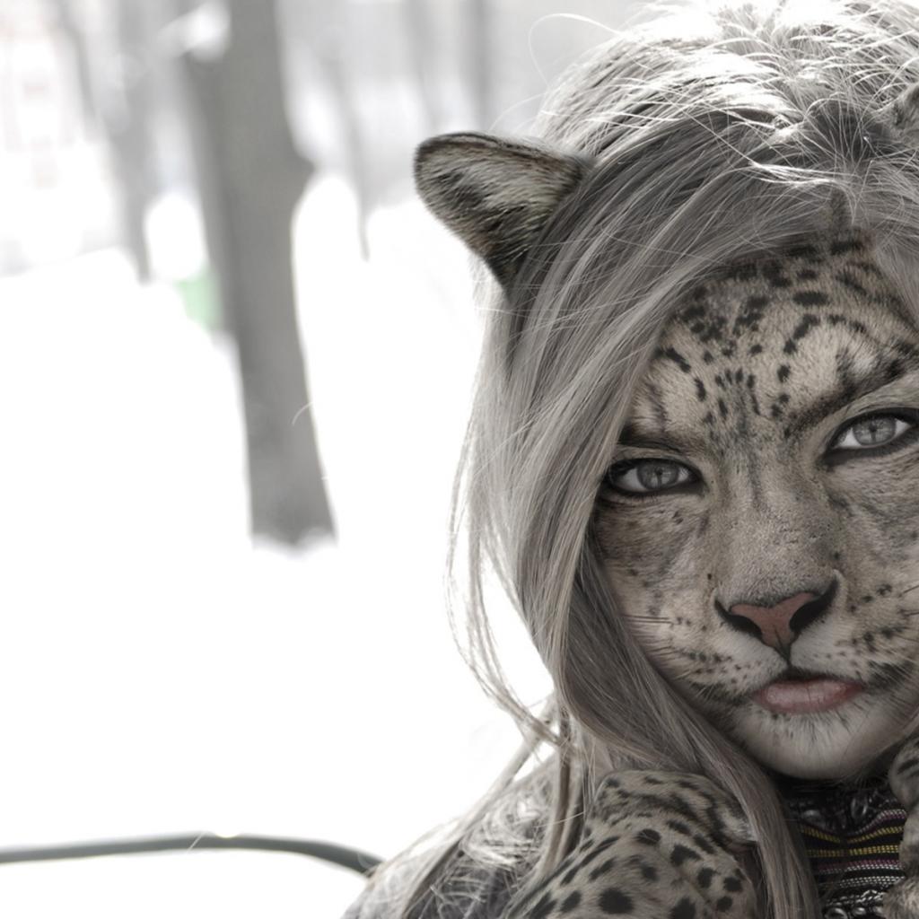 Wallpaper Girl cat in snow
