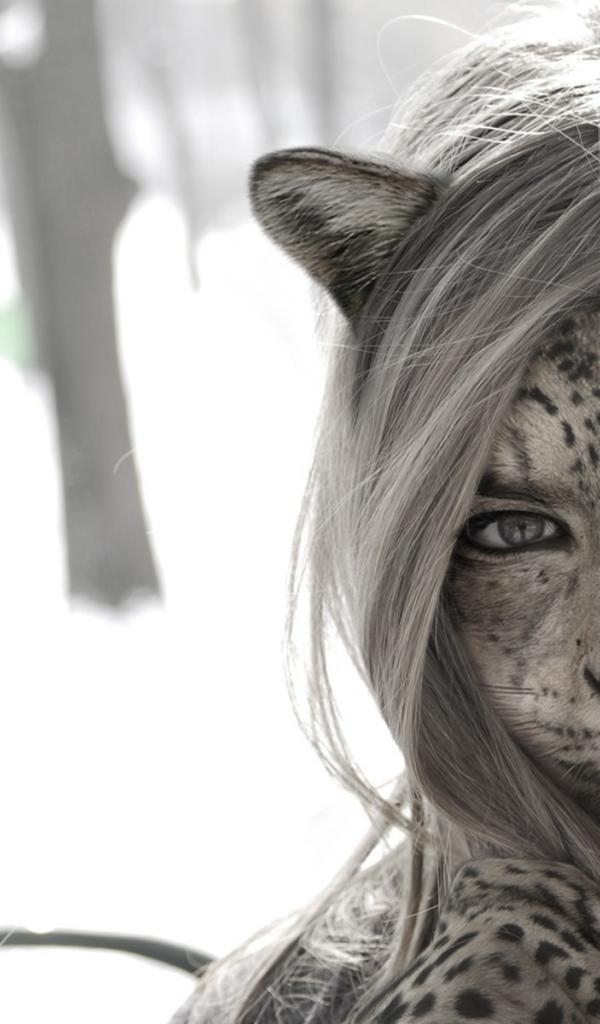 Wallpaper Girl cat in snow