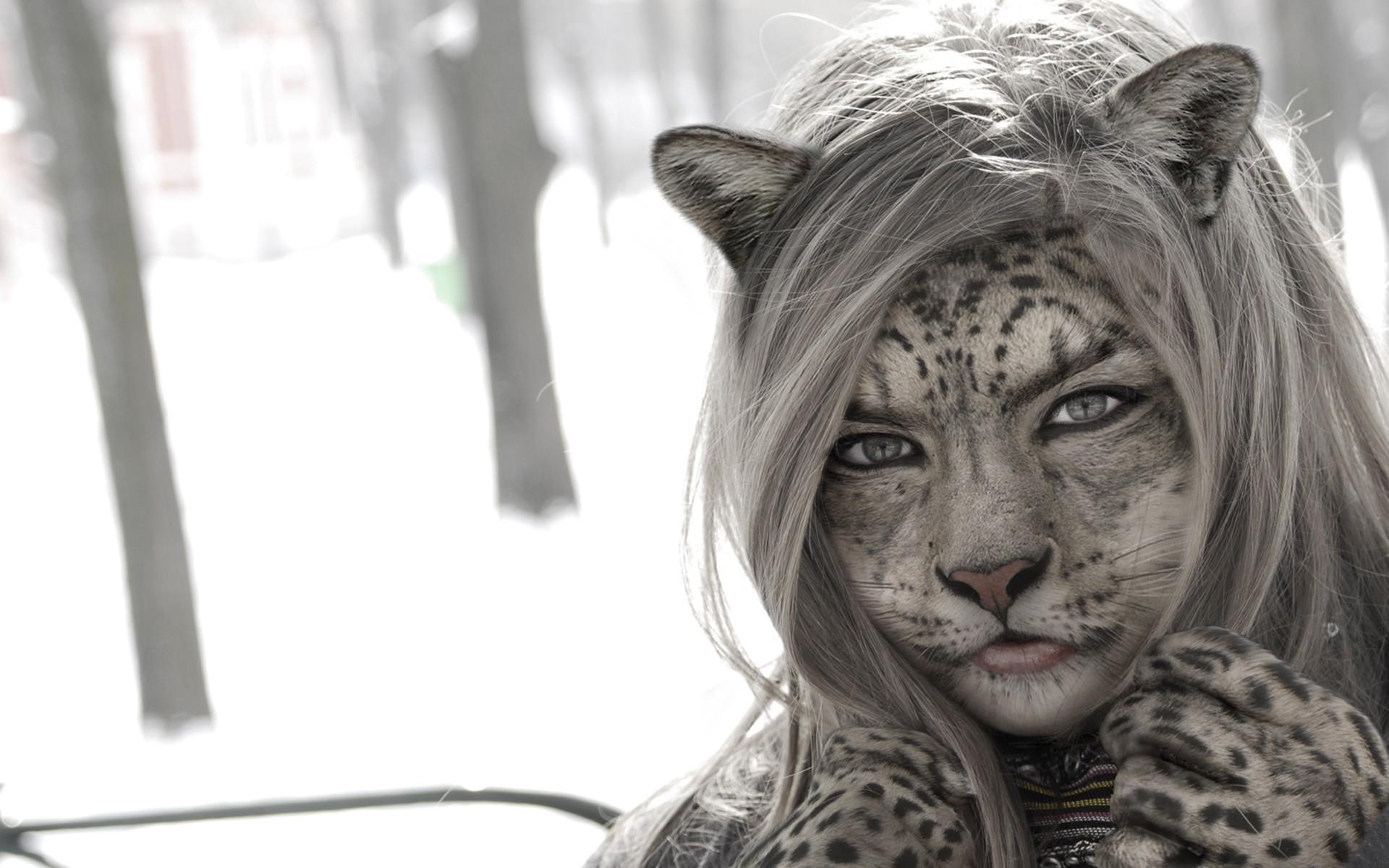 Wallpaper Girl cat in snow