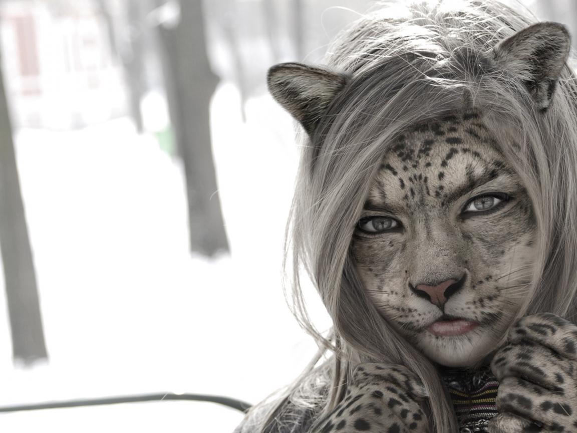 Wallpaper Girl cat in snow