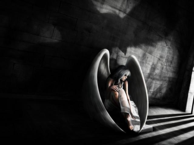 Wallpaper Angel folded its wings in prison