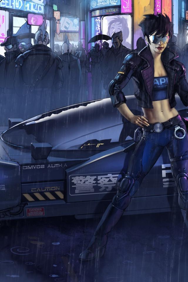 Wallpaper Girl cop, cyberpunk