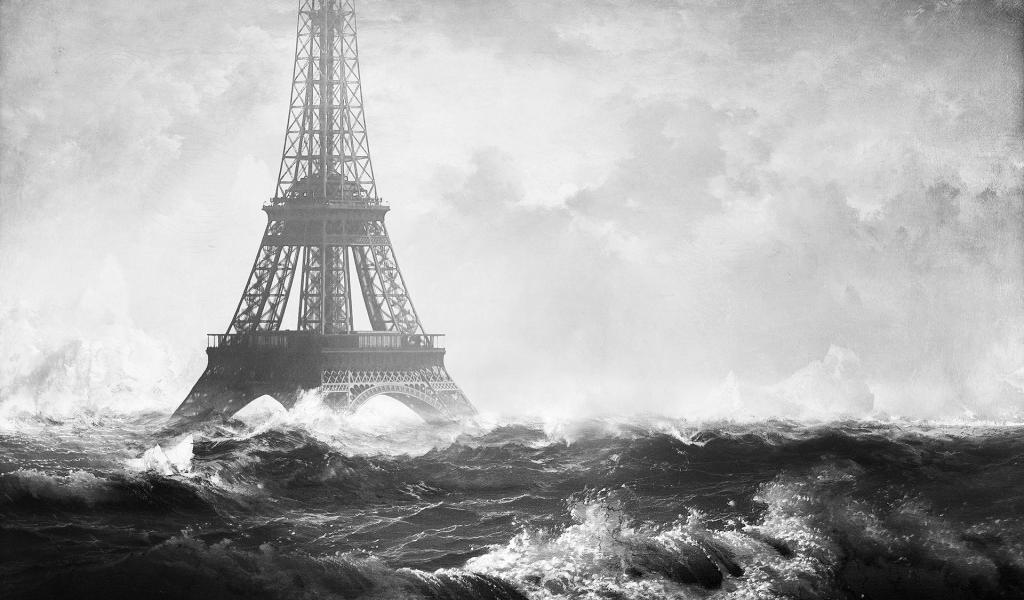 Wallpaper Eiffel Tower among the Burning Sea