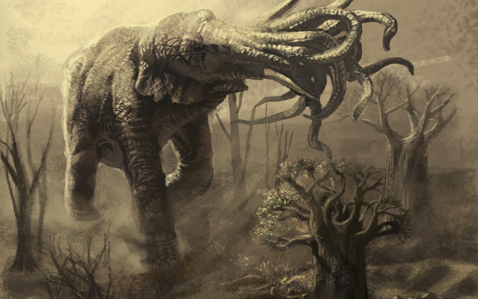 Wallpaper Elephant with multiple trunks