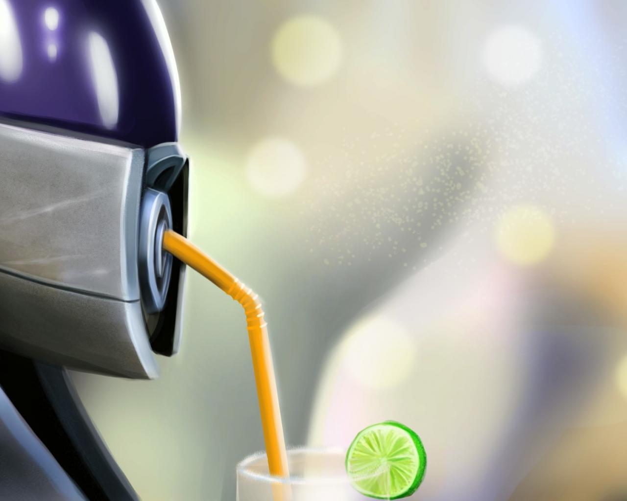 Wallpaper Robot drinking cocktail through a straw