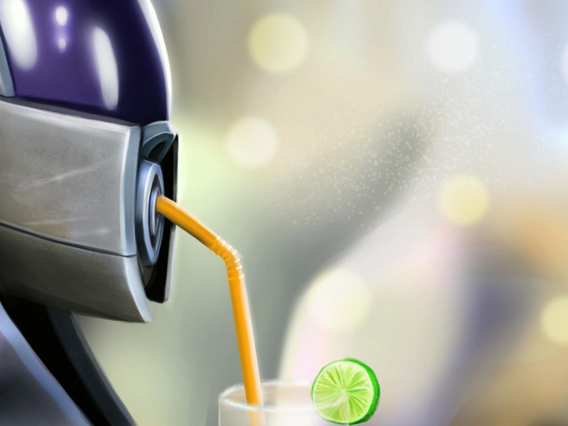 Wallpaper Robot drinking cocktail through a straw