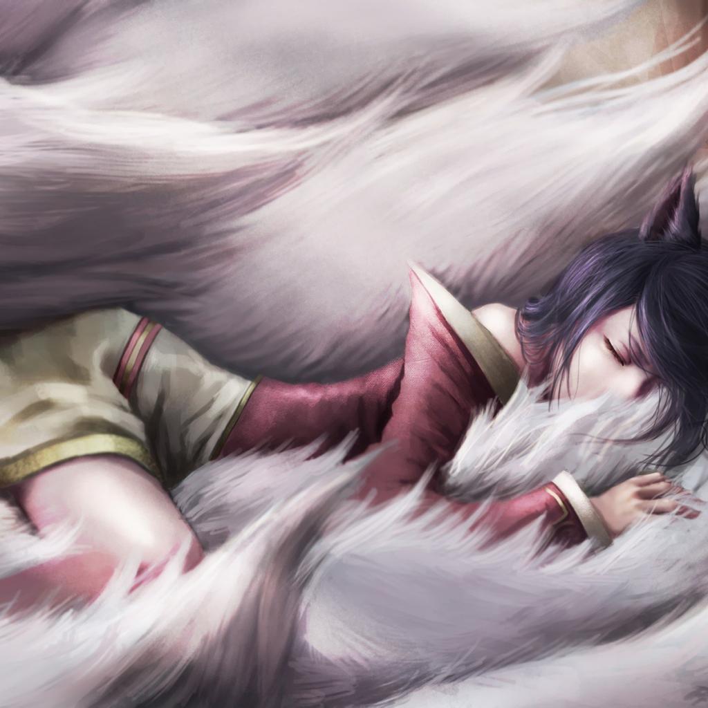 Wallpaper Girl sleeps in the white fur