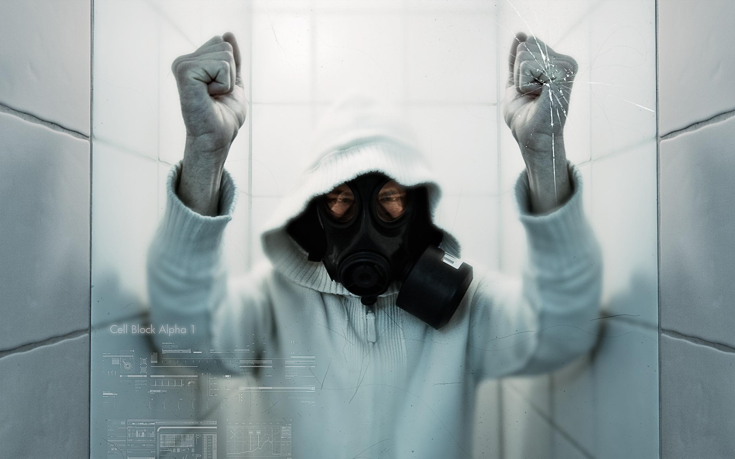 Wallpaper The masked man locked behind glass